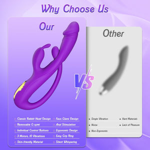 3-in-1 Classic Rabbit, Reimagined: Trinity Bloom fuses the timeless rabbit ear design, a lifelike glans-shaped shaft, and a bean-like G-spot bump for triple-layer stimulation. It glides effortlessly along your curves, teasing the entrance, filling you deep, and wrapping you in multi-point pleasure from start to finish.