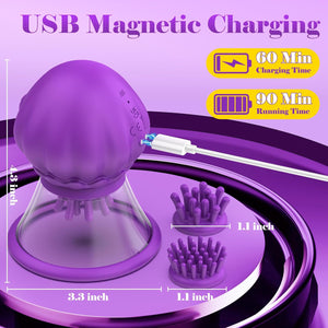 Innovative Suction + Expansion Design: The jellyfish-inspired silicone head uses airbag technology to naturally expand as it sucks, creating a unique swelling sensation that feels alive. With one-touch control—long press to start continuous suction, quick double-tap to release—you’re always in command of your pleasure.